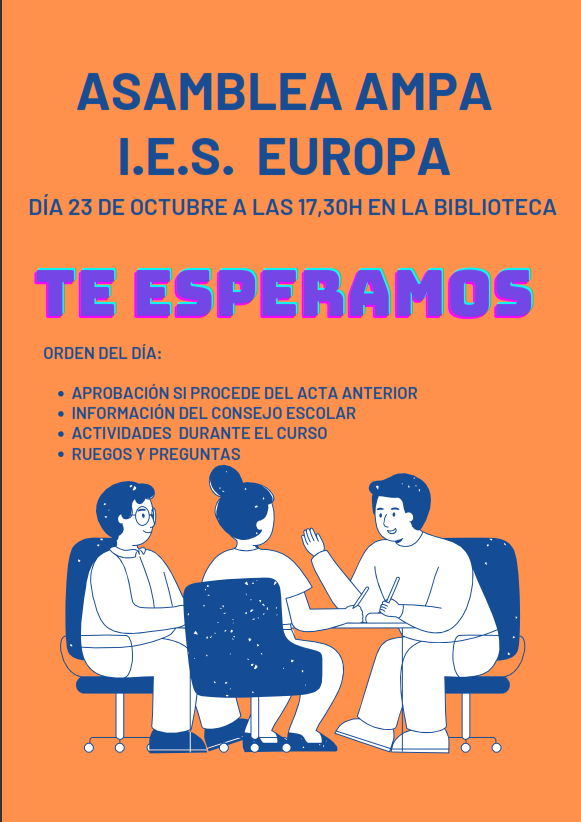 Estimadas familias, os convocamos a la primera asamblea del AMPA. La reunión tendrá lugar en la biblioteca del IES, a las 17.30, el lunes 23 de octubre.