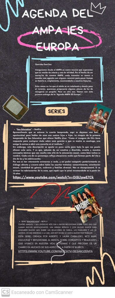 Os enviamos un nuevo recurso que ha sido creado por unas mamás del AMPA, la «AGENDA AMPA IES EUROPA», con informaciones y recursos que esperamos os sean de utilidad.