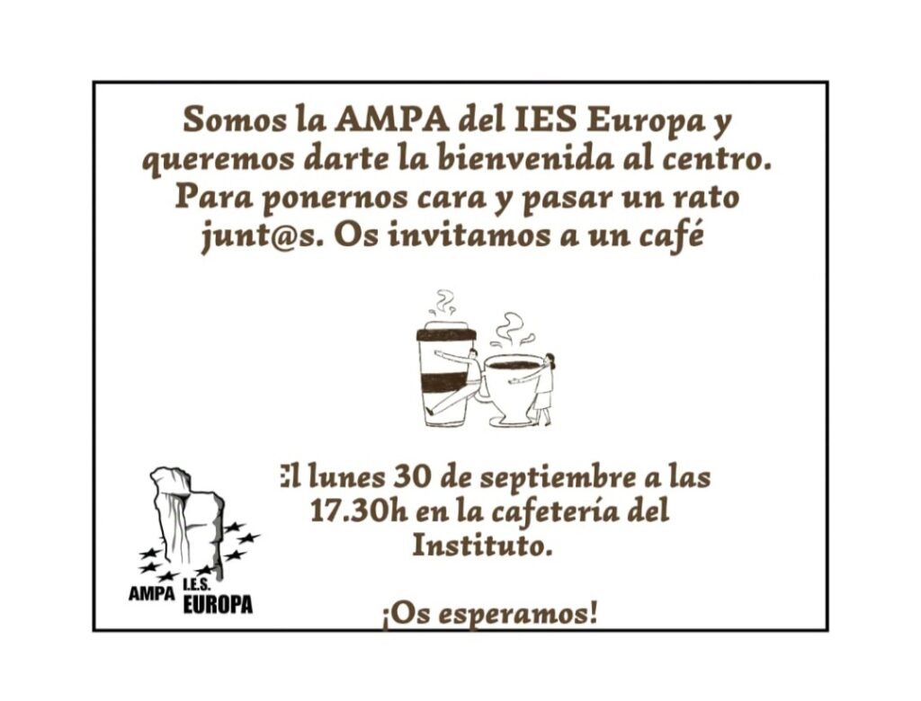 MERIENDA DE BIENVENIDA / Enlaces / Por ampadmin ¡¡Ven a conocernos!! Te esperamos el lunes 30 a las 17:30 h en la cafetería del instituto